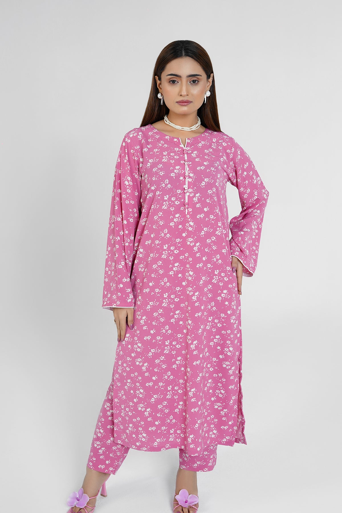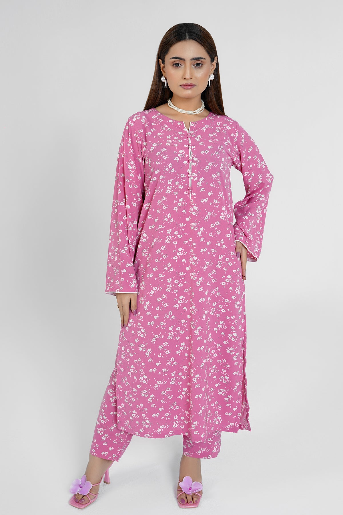 | Style: | Round Neck Slit with button-down front & full sleeves with Straight Trouser |