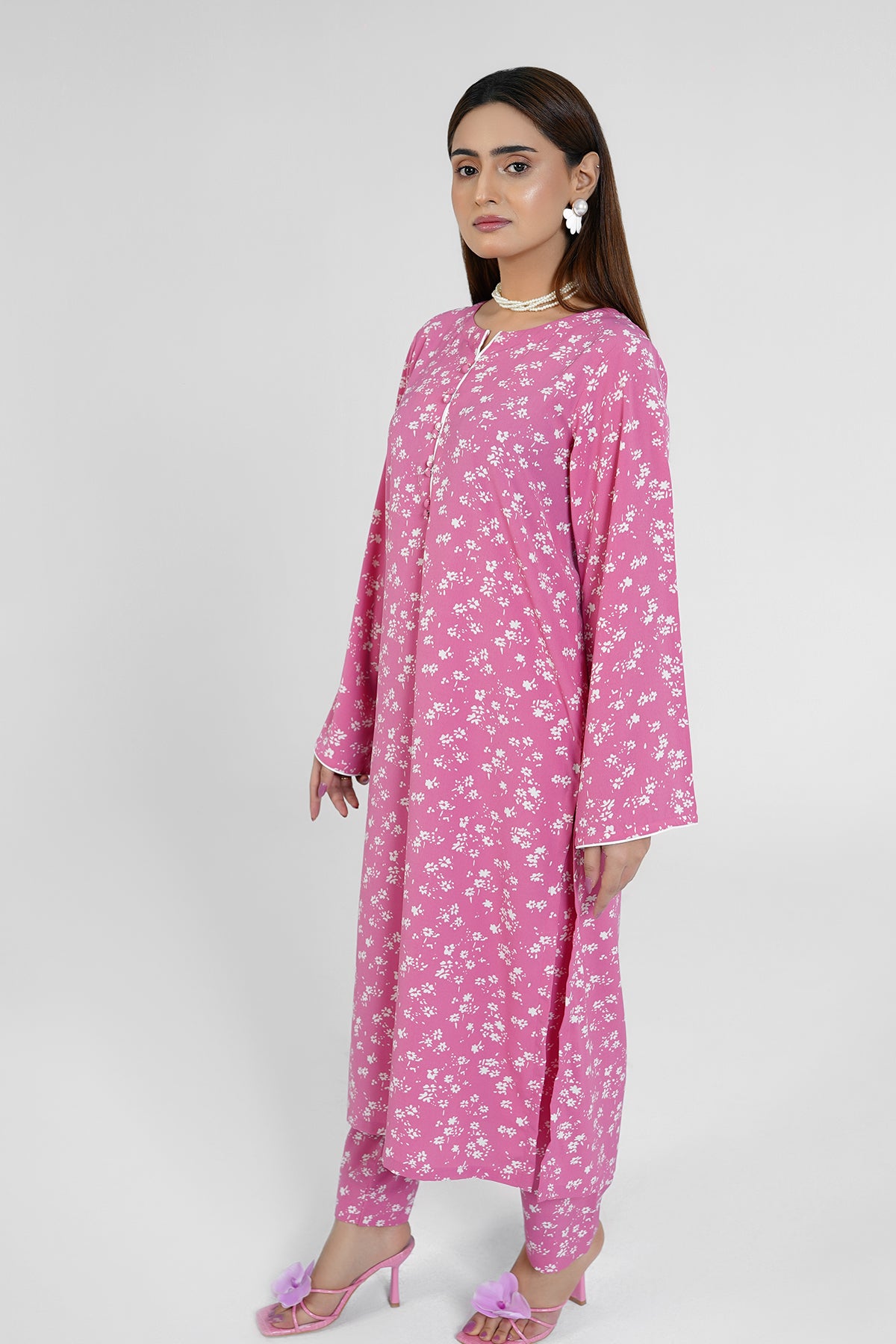 | Color: | Pink with white floral print |